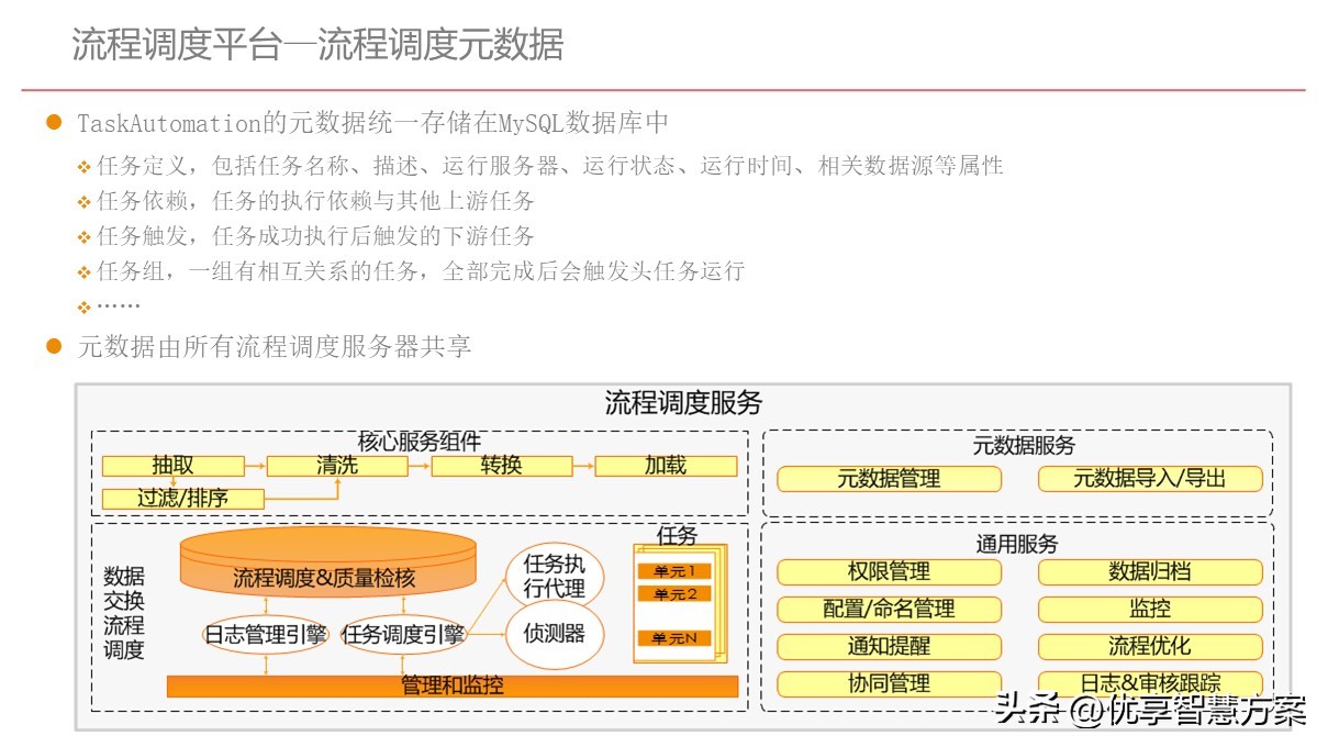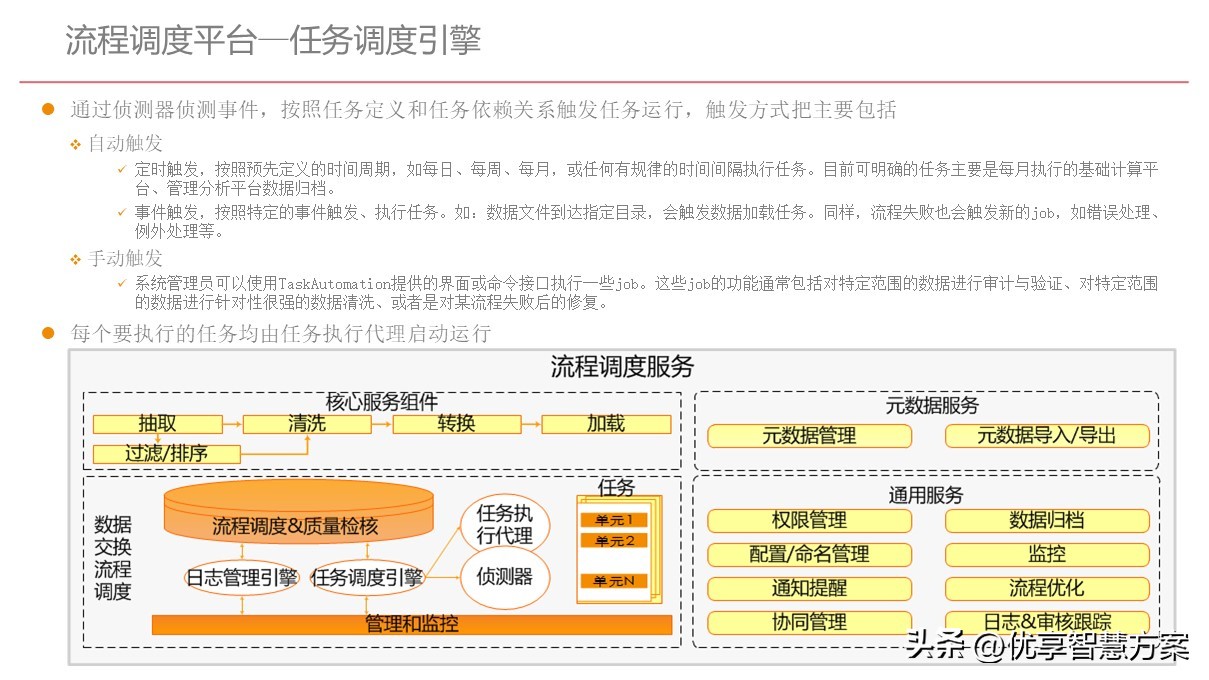 - l流程调度平台:自主开发的流程调度引擎实现整个数据平台的数据处理任务调度和运行
