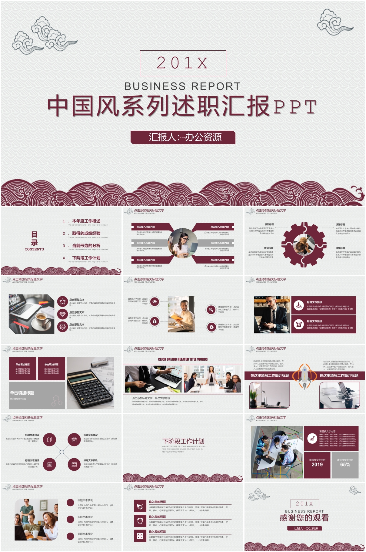 现在有很多小伙伴都喜欢使用古风十足的物品,如果大家也想让自己的工作汇报PPT古风一些的话,也可以直接套用中国风的PPT,非常的简单大方,用在汇报、总结等等场合中也是非常适合的哟~