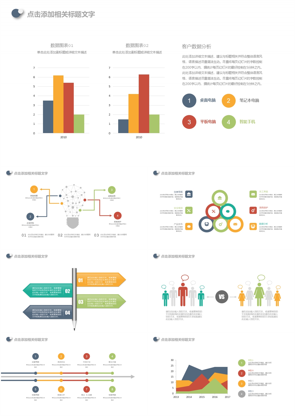 我们都知道,不管是在什么样的场合中,使用扁平化风格的PPT向来都是不会出错的,毕竟这可是PPT模板中的万金油啊,颜色鲜艳又不会过于花俏,好看得来又很好用,真的是非常好哟~