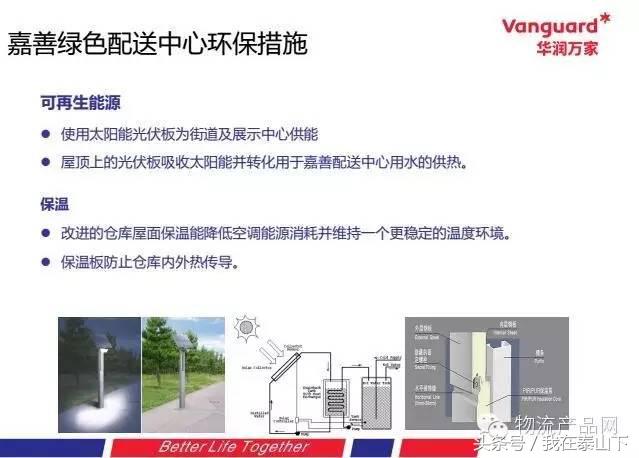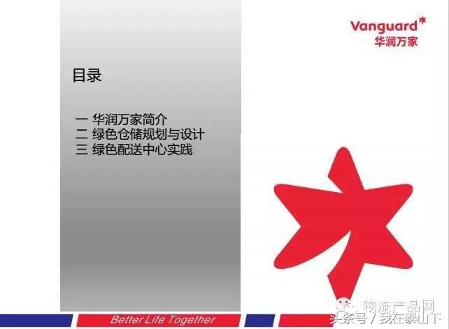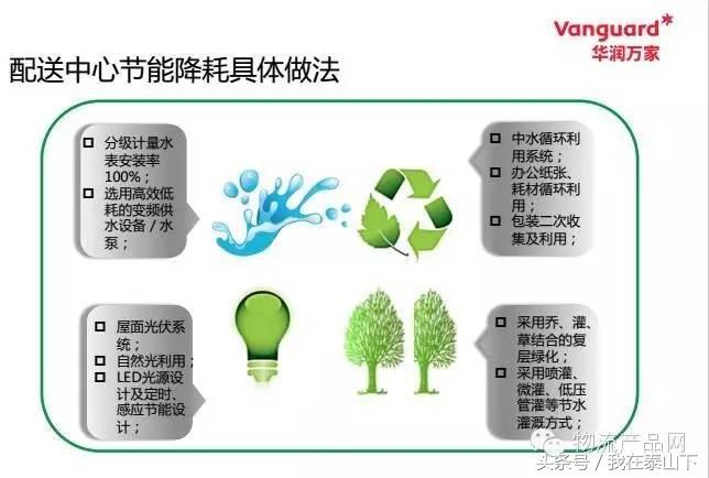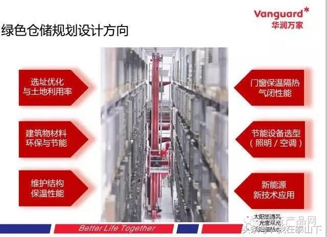 随着前端门店业务的规模化扩展,我们全国的物流网络也要加快推进,未来我们将在节点核心城市建立多温层的配送平台,可以支持全国1600家门店的营运,可以支持每年1100亿的销售,在整个前端的物流规划阶段,华润万家最重要的一项原则就是关注环保与绿色。
