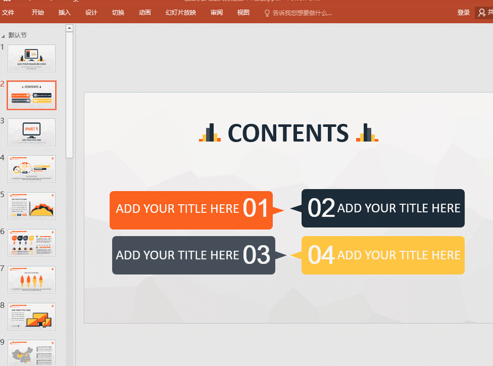 在制作PPT的时候,若是所有的图片都千篇一律,看多了,那还想继续看吗?那当然不会,所以,什么样的PPT配什么样的颜色是很重要的,学会改变,不会突兀,效果也就提升了。