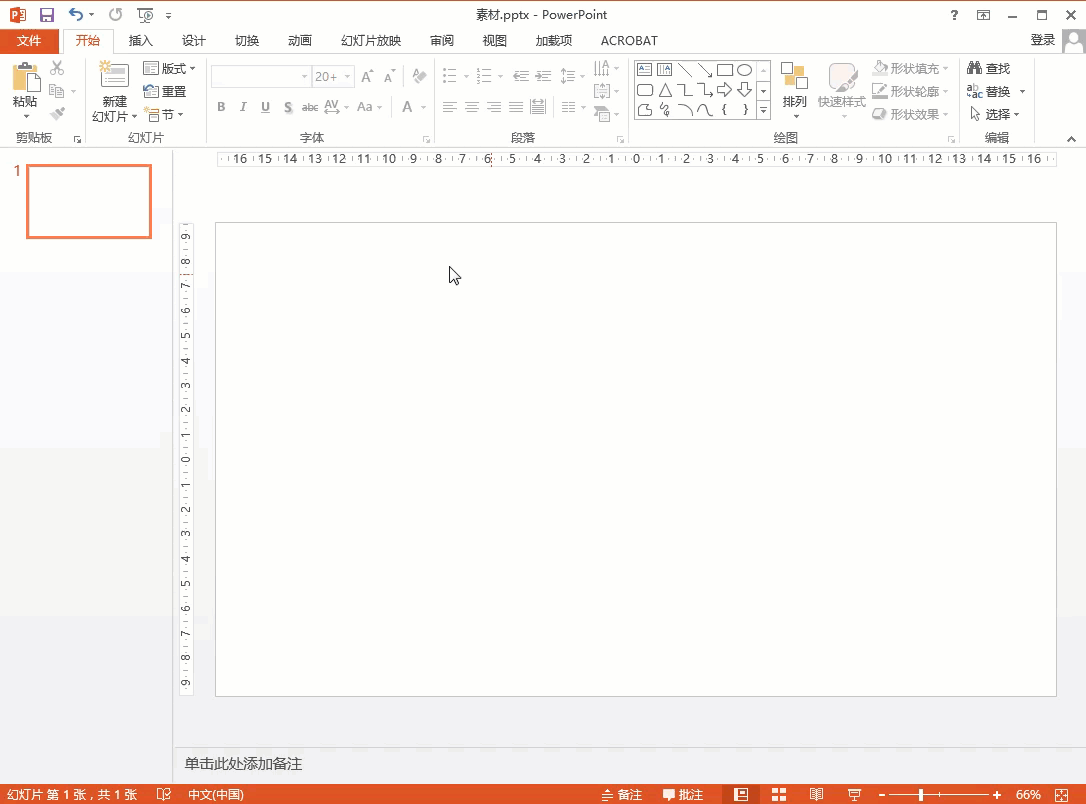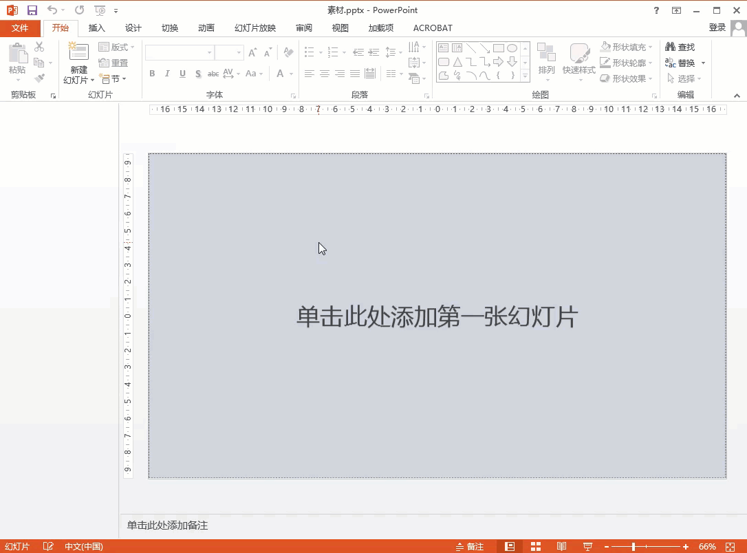 点击PowerPoint编辑区添加第一张幻灯片,右键单击空白位置,将鼠标指针移动至版式选项,选中二级菜单中的空白版式。