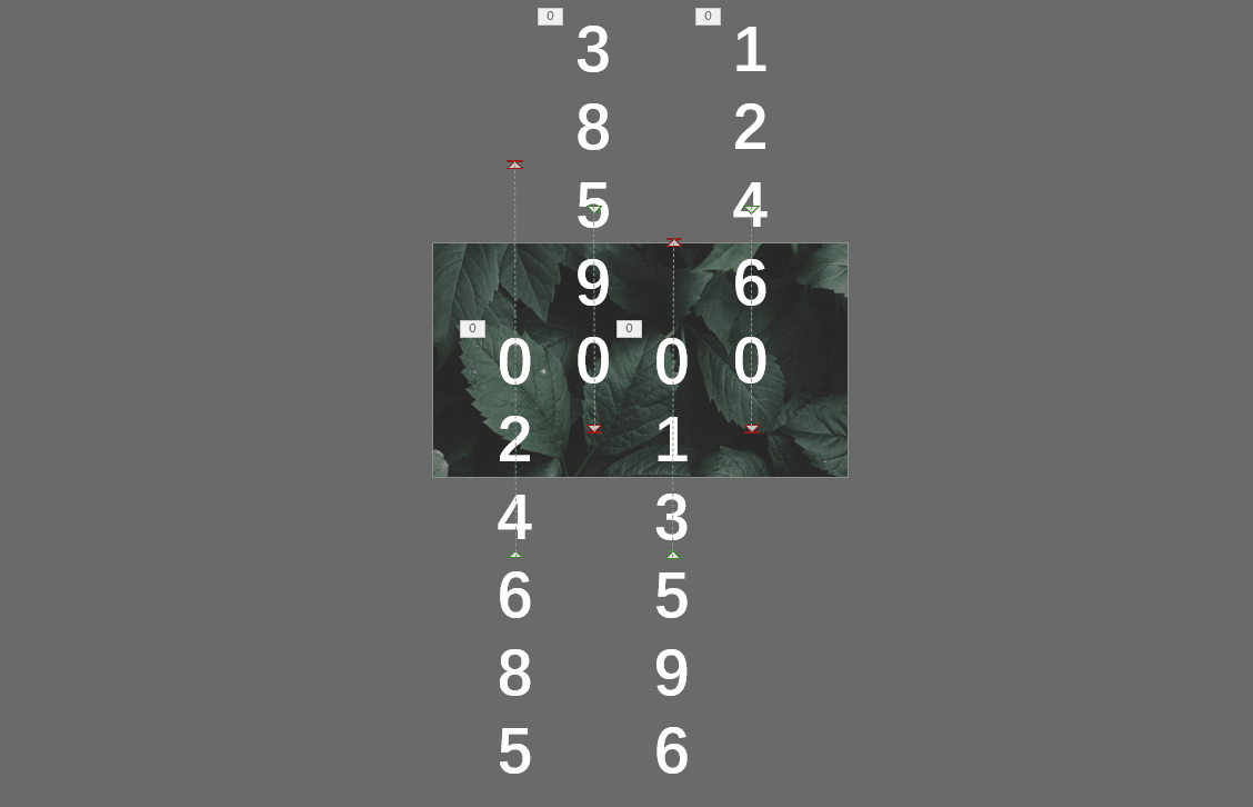 第二步插入四个文本框,呈竖直方向输入数字,将文本错位摆放,如下图:
