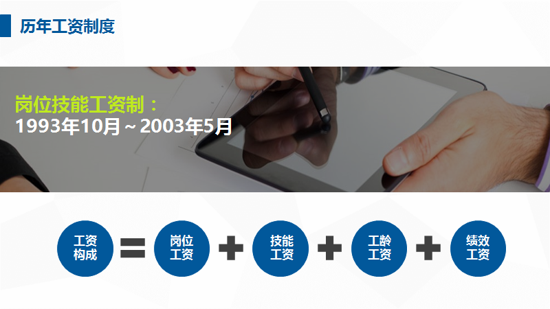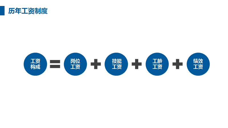 这个内页内容说的是工资构成。工资是由岗位工资…等好几部分组成,所以了,我们可以选择用等式的方式来呈现,就是工资是由什么什么相加,如下...