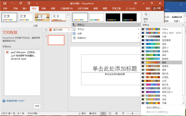 不知道大家有没有注意过PPT里的主题配色方案,在【设计】——【颜色】这里,点开就能看到很多种配色。