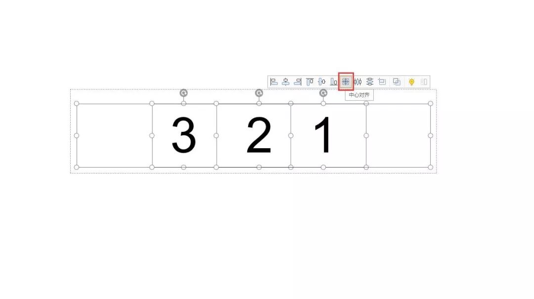 ◆为了倒计时的数字可以出现在同一位置,我们需要调整文本框的位置,同时选中这三个文本框,点击菜单栏“中心对其”将其全部重叠对其在一起
