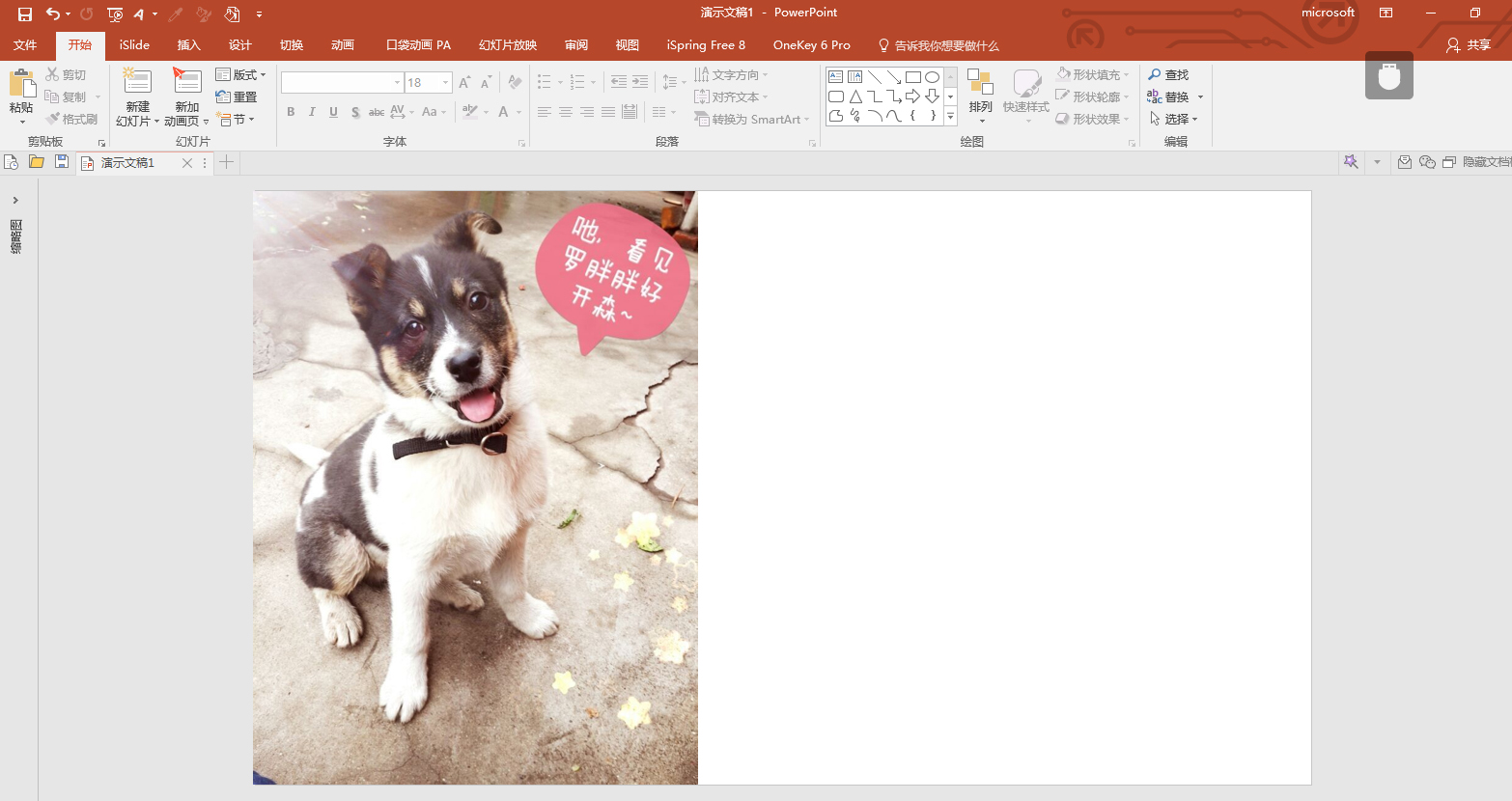 首先,打开汪的照片,复制粘贴,置入到PPT画布中。