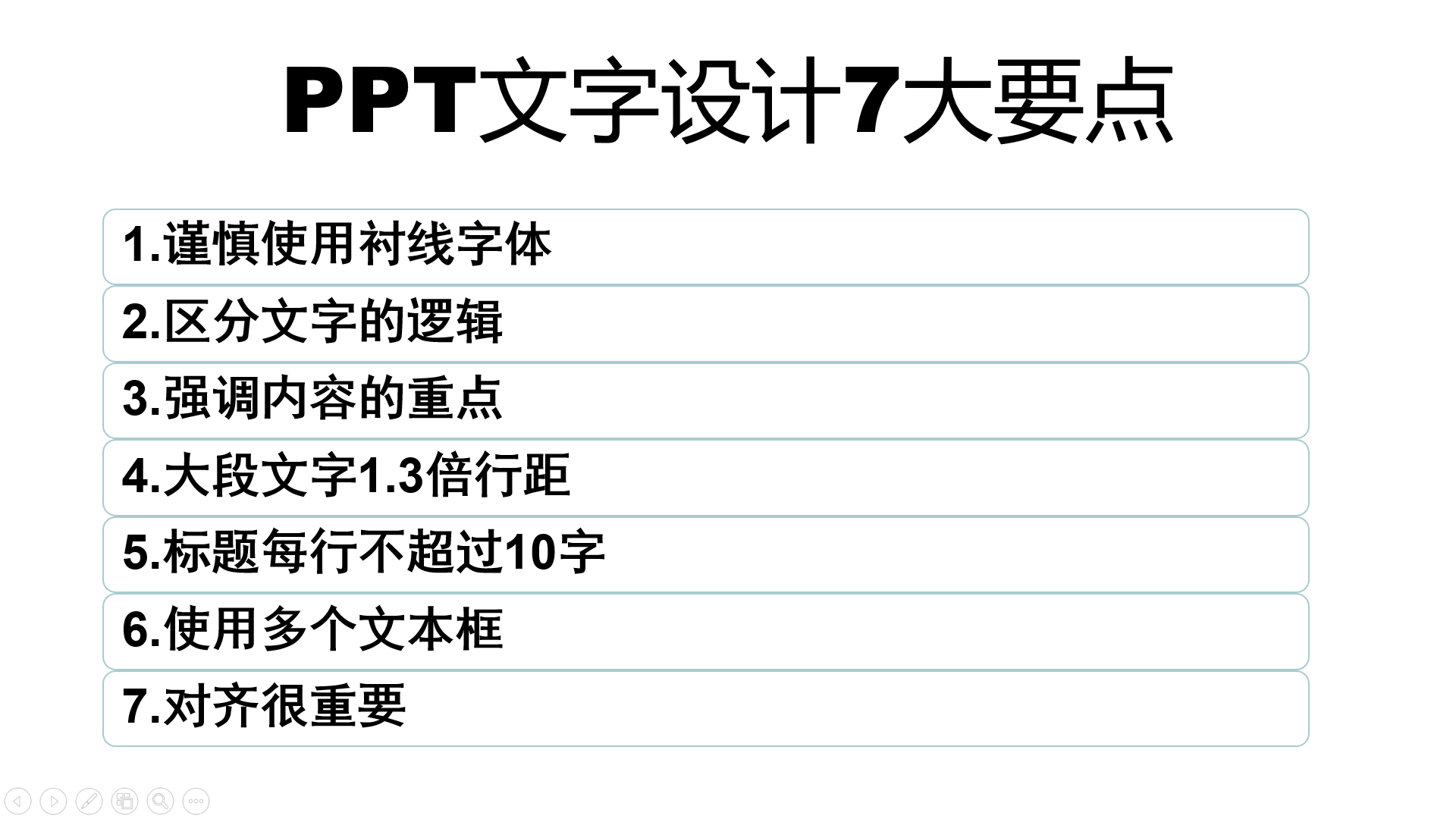 对自己的课件内容做减法;尽量凝练为精炼的语句。