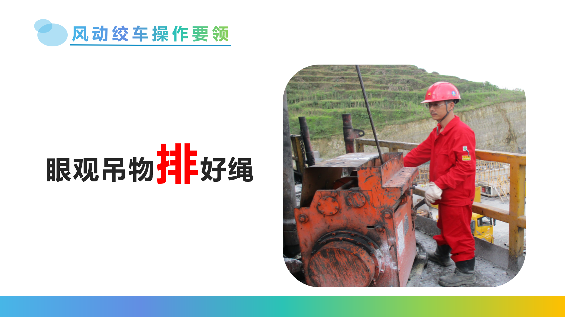 以上面的课件为例,也选择了纯白色的背景,用了简单的渐变色块来做一些装饰;在白色背景上用深色字体输入,将最重要的文字用“红色”,并改变字号加以突出。