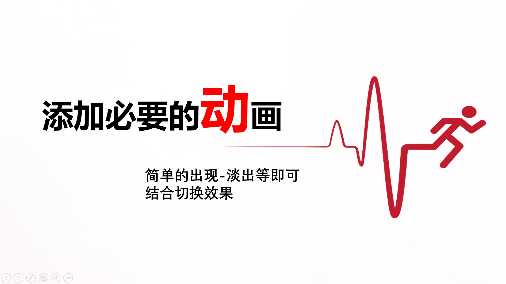 微课的页面不要用过于炫酷的,动作幅度过大的效果,而主张用较为舒缓的、自然的动画效果。