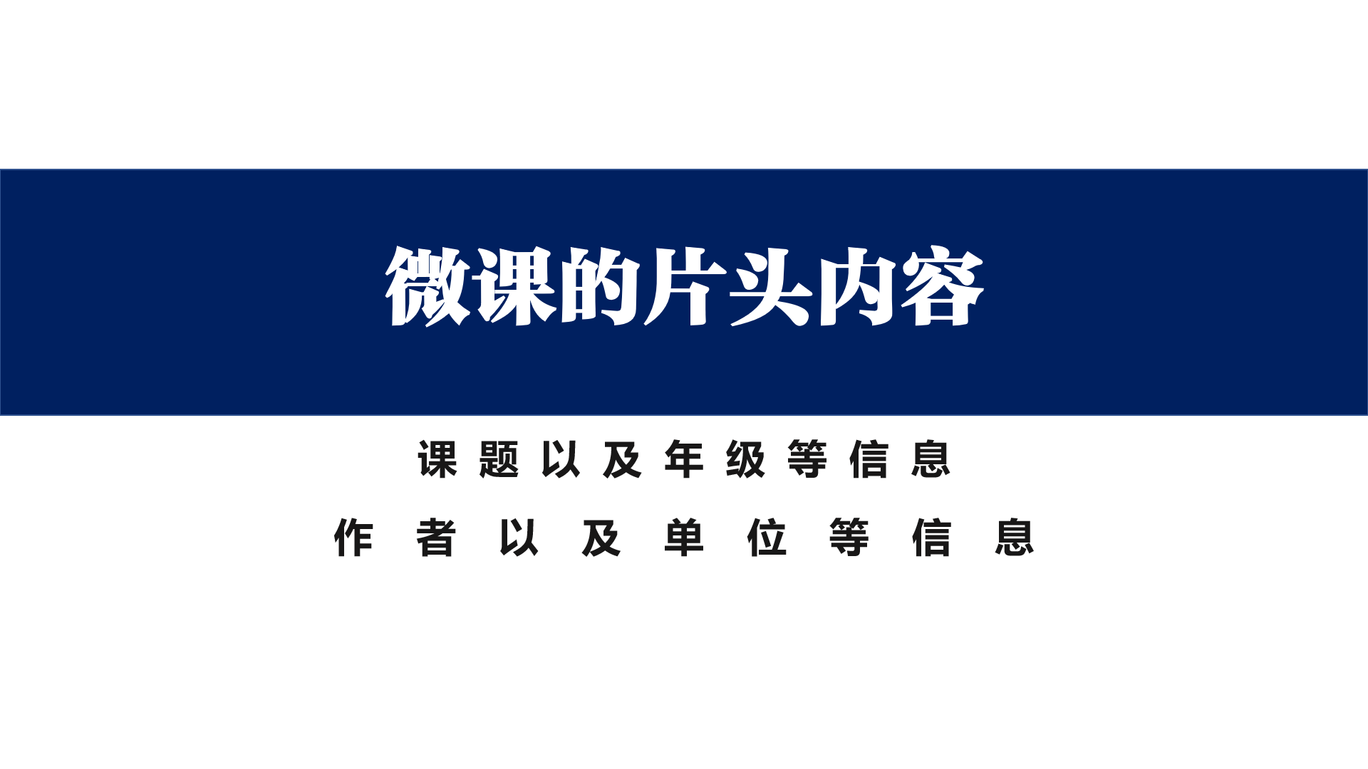 以上面的课件为例,选择了纯白色的背景,用了简单的色块来写微课 的片头内容;在白色背景上用深色字体输入其他信息。