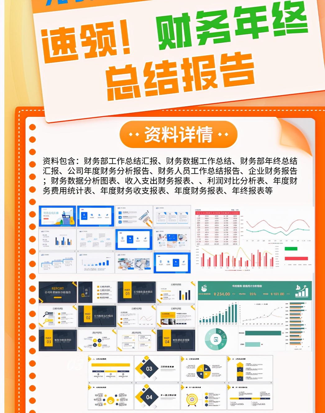 以上就是本期精选《财务年终总结报告.PPT》资源包部分福利展示,这只是冰山一角,文件过多,就不一一列举展示。