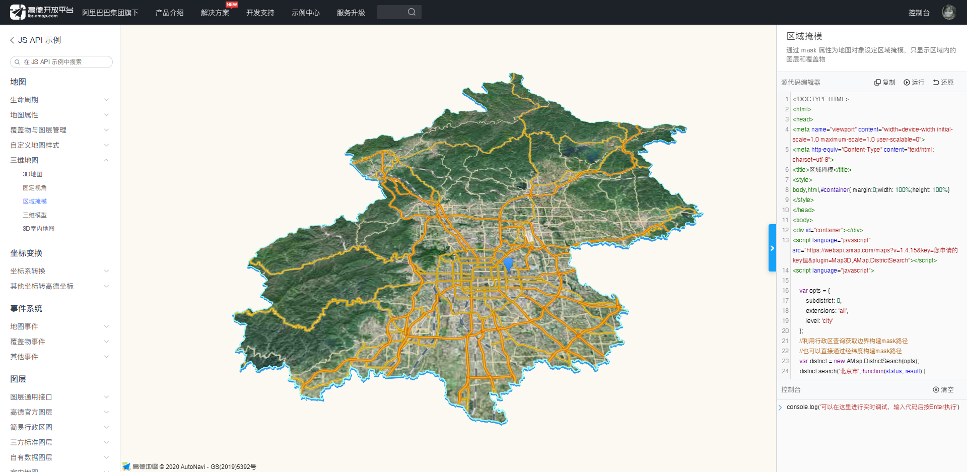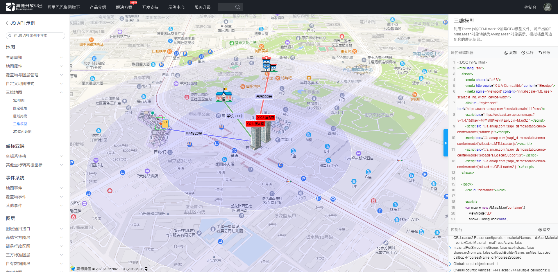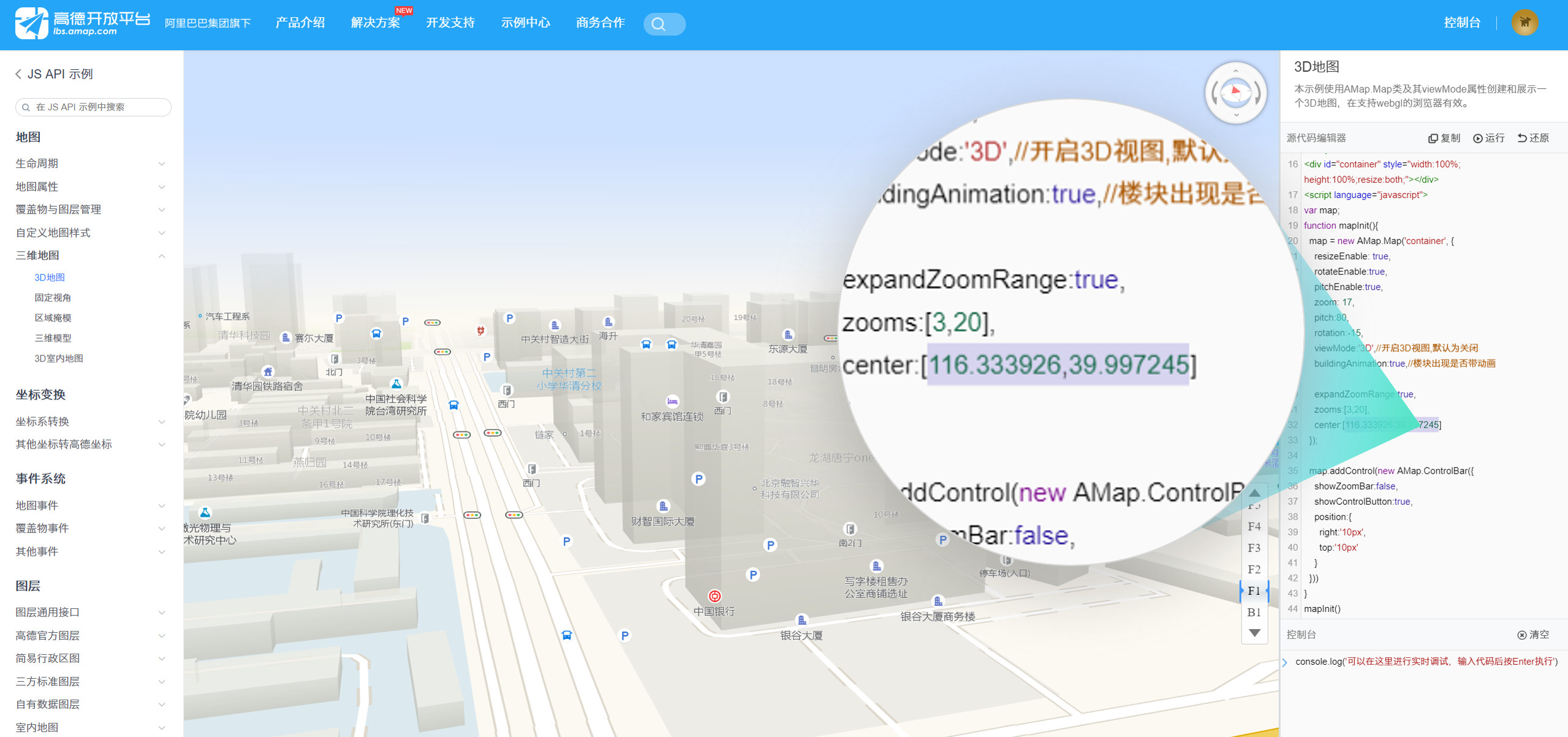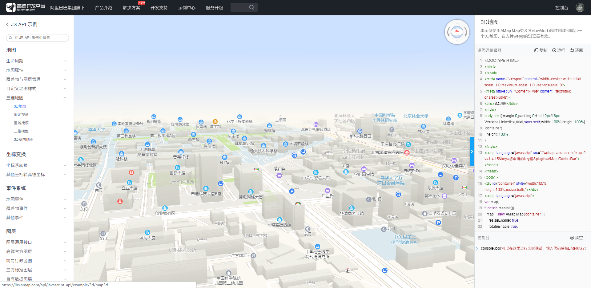 搜索高德地图-3D地图示例中心,就可以进入了,不过这是一个演示的界面,不能搜索位置: