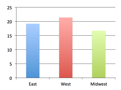 from pptx import Presentation from pptx.chart.data import CategoryChartData from pptx.enum.chart import XL_CHART_TYPE from pptx.util import Inches # create presentation with 1 slide ------ prs = Presentation() slide = prs.slides.add_slide(prs.slide_layouts[5]) # define chart data --------------------- chart_data = CategoryChartData() chart_data.categories = ['East', 'West', 'Midwest'] chart_data.add_series('Series 1', (19.2, 21.4, 16.7)) # add chart to slide -------------------- x, y, cx, cy = Inches(2), Inches(2), Inches(6), Inches(4.5) slide.shapes.add_chart( XL_CHART_TYPE.COLUMN_CLUSTERED, x, y, cx, cy, chart_data ) prs.save('chart-01.pptx')