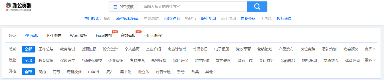 一个主要提供丰富的办公资源的网站,网站主要囊括了大量的PPT模板、PPT图表、Word模板、Excel表格、音效模板等。分类较为明确,可以通过分类来查找,也能通过搜索栏来查找。