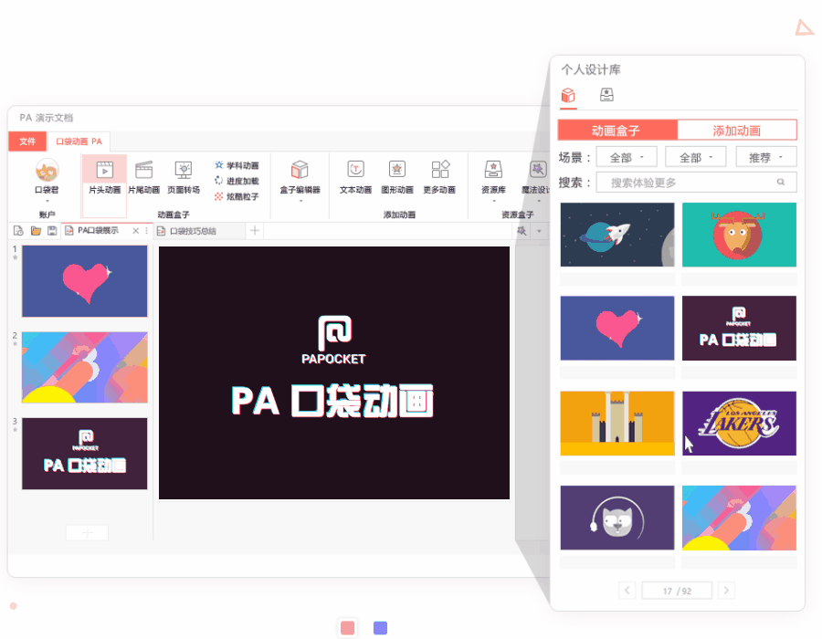 当然,如果你想拥有炫酷的PPT的话,那么动画这一块就少不了了。PA口袋动画,拥有丰富的动画效果。它能让我们的PPT更炫酷、更吸引观众的眼球。