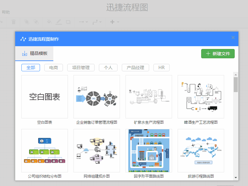 上迅捷流程图,就可以在线找到你需要的流程图模板哦。