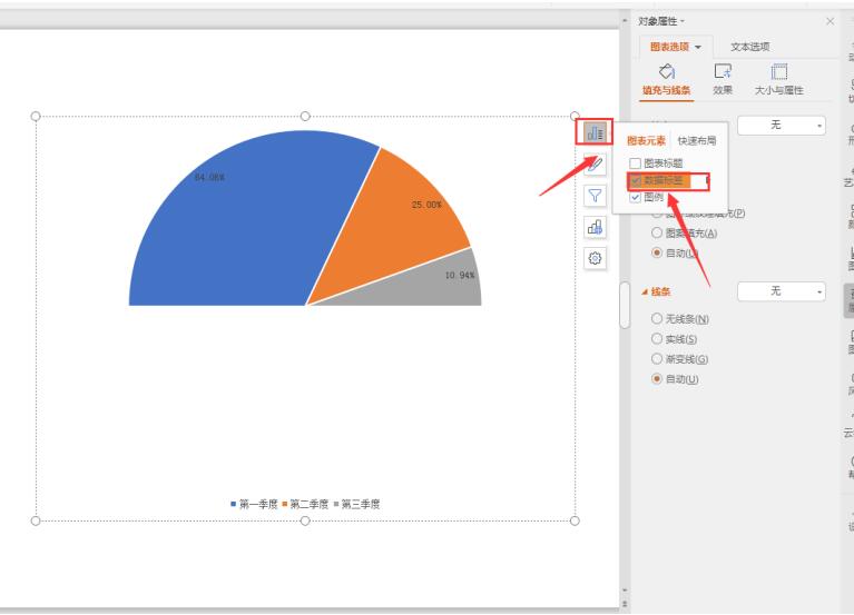3.最后,我们选中【图表元素】快捷键,勾选【数据标签】,将不必要的数据删掉即可