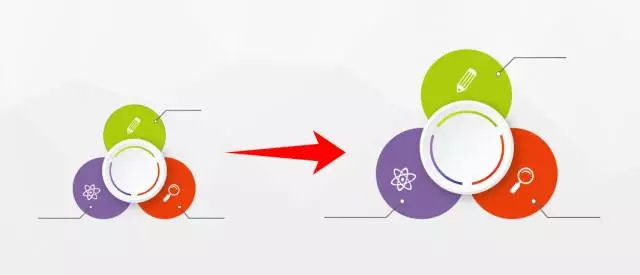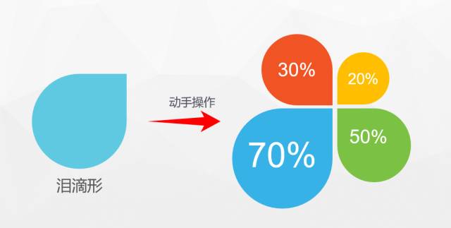对图形的操作中,经常会用到旋转设置,除了手动旋转外,还可以通过:“开始” >> “排列” >> “旋转” 来操作。例如下,经过复制“泪滴”,旋转,改变大小,可以得到下图效果。