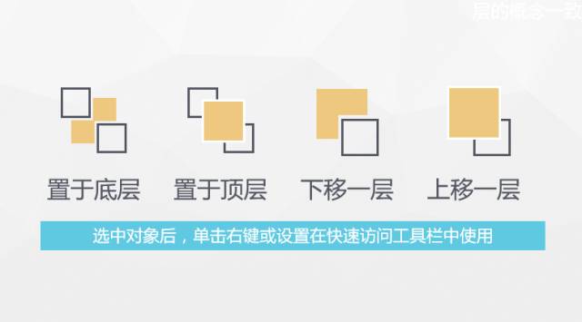 添加色块后,选中对象后,单击右键或设置在快速访问工具栏中使用,即可设置:“置于底层”、“置于顶层”、“下移一层”、“上移一层”。