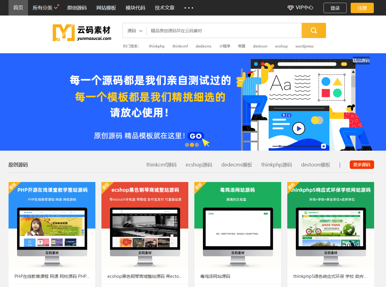 云码素材提供大量网站模板,html网站模板,小程序源码,自媒体素材,精品PPT模板,是开发者,程序员,码农,前端工程师,自媒体人员必上的源码素材网。