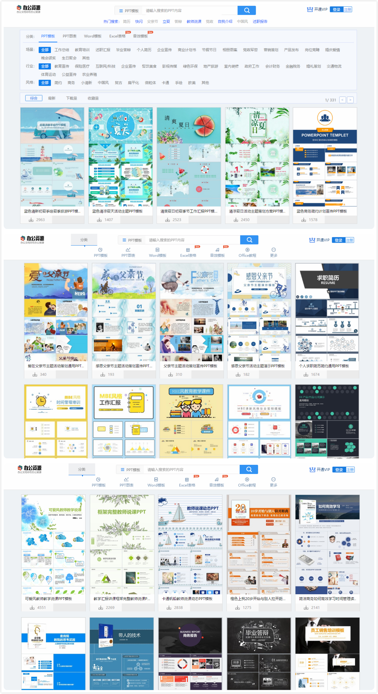 如果大家想找到好看的PPT模板套用的话,我们可以到【办公资源网】上查看一下,里面有非常多高颜值的模板,不管是扁平化、欧美风、卡通风等等风格的PPT模板,在网站中都可以找到。