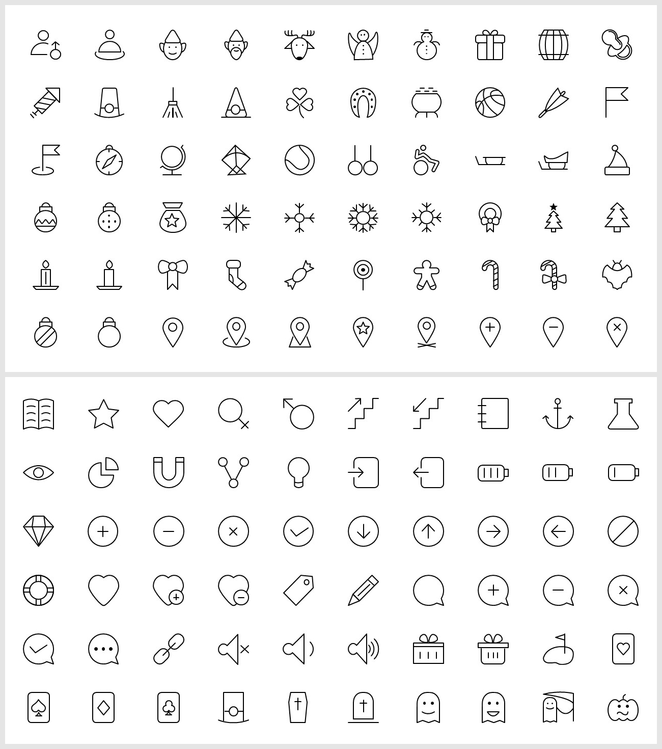 不想要太过花哨的图标的话,这里也有非常简单的黑白风格PPT图标,而且如果觉得黑白太过沉闷的话,我们也可以自己更换图标颜色。