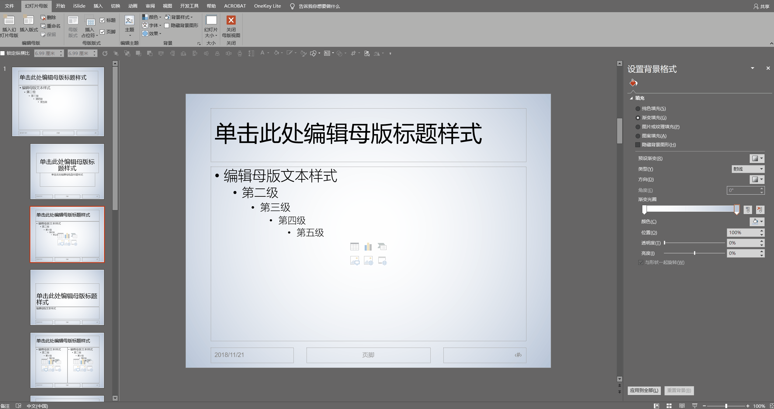 首先,我们先来了解一下母版的构成,很简单,母版由主题页和版式页组成。