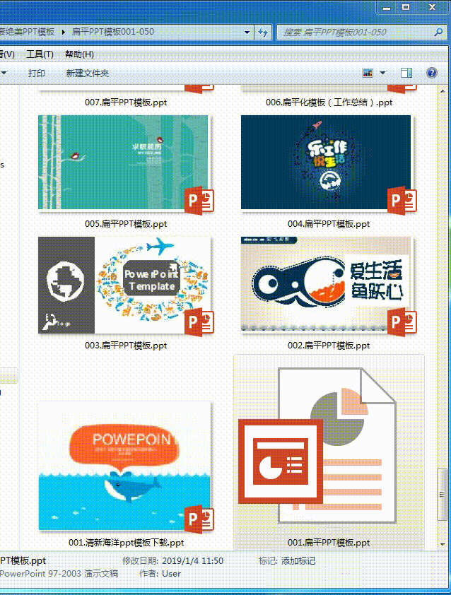 像我这种存了好多PPT模板的人,要想找到硬盘里某个合适的PPT模板,一个一个的打开去找,实在是慢的要吐,win7以上的系统大家可以用下面的方法来提高查找的效率。