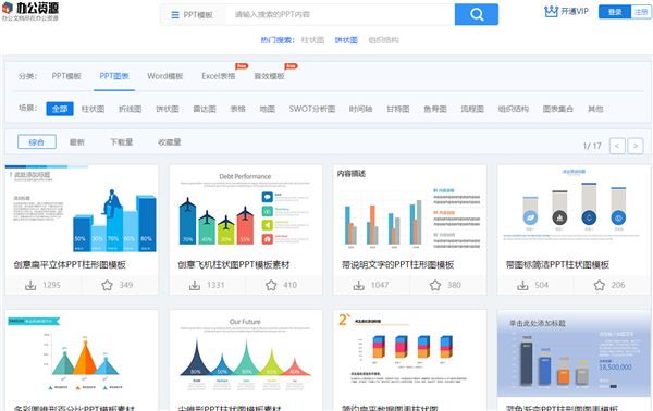 我们在这里网站上可以看到这里有很多办公资源,其中就有我们需要的PPT模板和PPT图表等,我们在这里面可以按场景、行业、风格分类搜索,这个网站上的PPT模板质量都还蛮高的,可以放心下载使用~