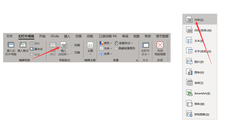 而文本占位符是通过【幻灯片母版】那儿通过插入占位符进行插入的: