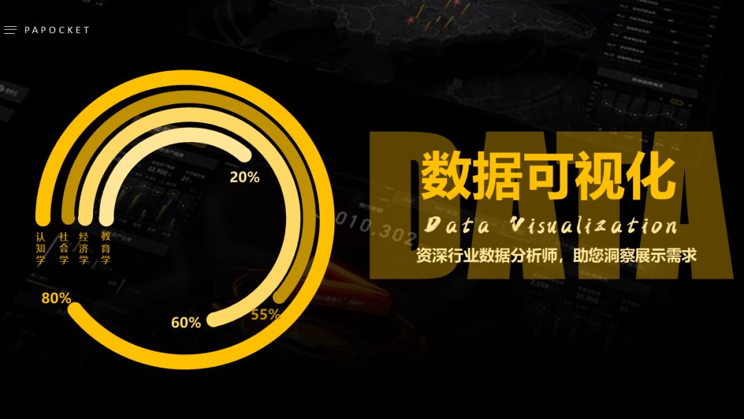 环形柱状图,作为非Office标准图表,或许真的是始于颜值的一个图表,所以原则上大家一定要根据自己的实际使用诉求和场景去选择它,能够在设计表达的美化诉求和数据呈现诉求中找到,同时希望大家在后面的PPT设计中有更多实际体验与运用。