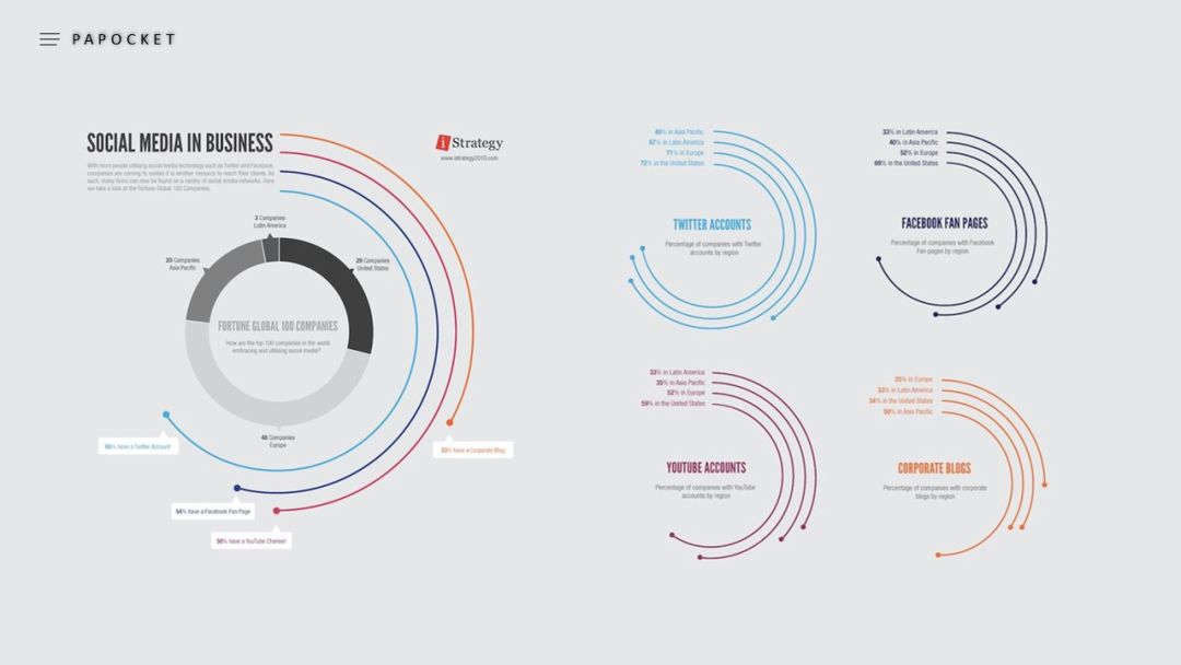 以上便是本期关于环形柱状图表的三种PPT制作方式,大家可以根据自己的情况去制作,借助这些图表制作方式,我们就能完成很多数据展示的诉求。