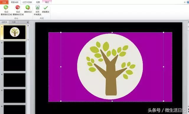 做PPT的时候经常遇到喜欢的图但是背景与PPT不搭,怎么办呢?一秒抠图去背景新技能如下:选中图片——选择格式——删除背景——选中要保留的区域——保留更改。