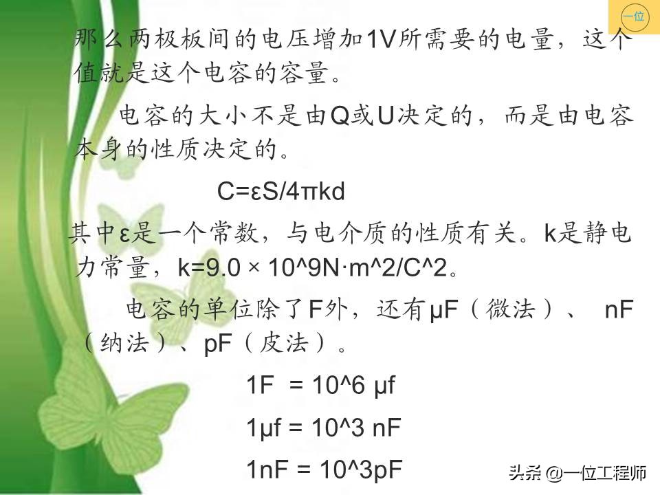 4.对于电容:两块互相靠近但彼此绝缘的金属片就可以构成一个电容,它是一种储能的元件。