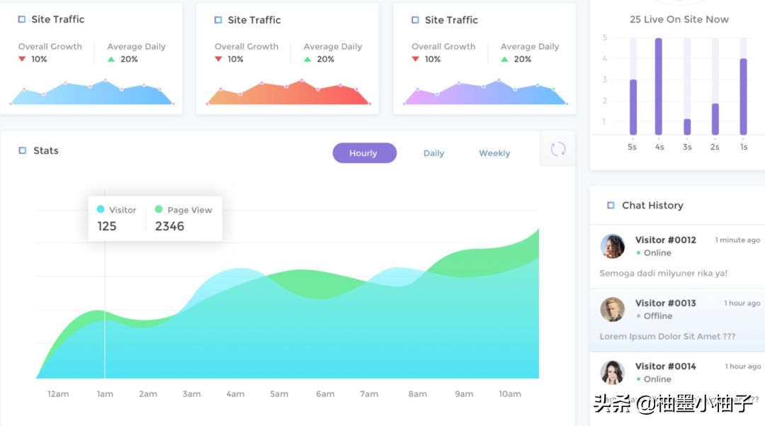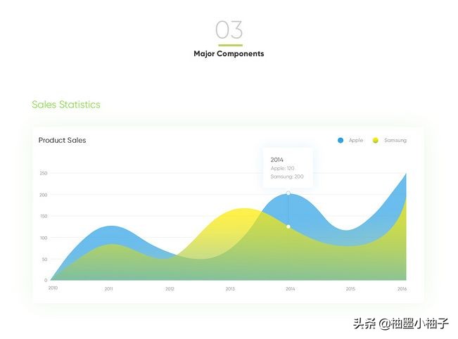 柚子来总结一下这几个折线图的特点:将折线以下的部位填充成面,丰富了画面,也可以更方便地看出数据的变化趋势。但是因为利用渐变的元素,所以整体看上去非常轻盈。