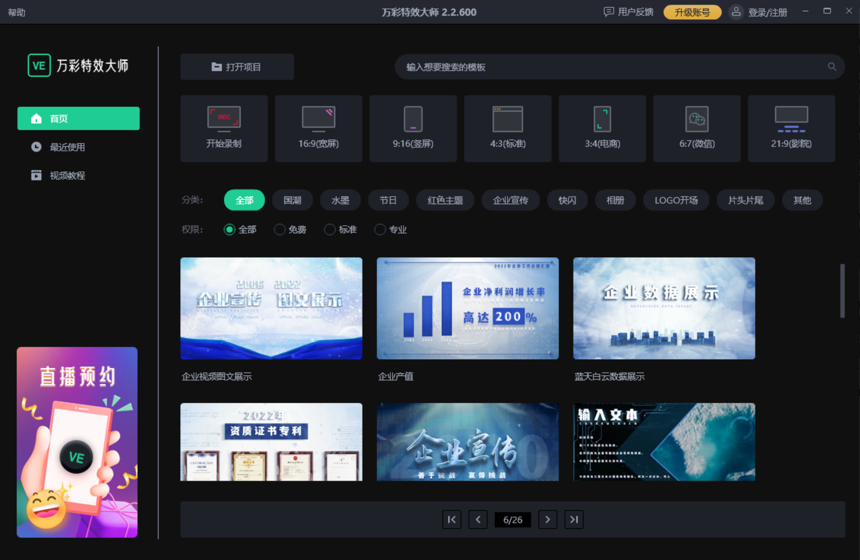 如果大家想要快速进行ppt片头片尾的制作,推荐大家能够使用市面上比较常见的视频剪辑软件,名字叫做万彩特效大师,原来的名字又叫做万彩剪辑大师,拥有非常强大的视频剪辑功能,是一款集特效和剪辑为一体的视频制作软件,让做特效合成比AE还要简单和快速,轻轻松松就可以完成短视频片头和片尾的制作,对于ppt片头和片尾的制作更是不在话下,能够给大家带来一个非常不错的效果,从而轻松实现视频制作。
