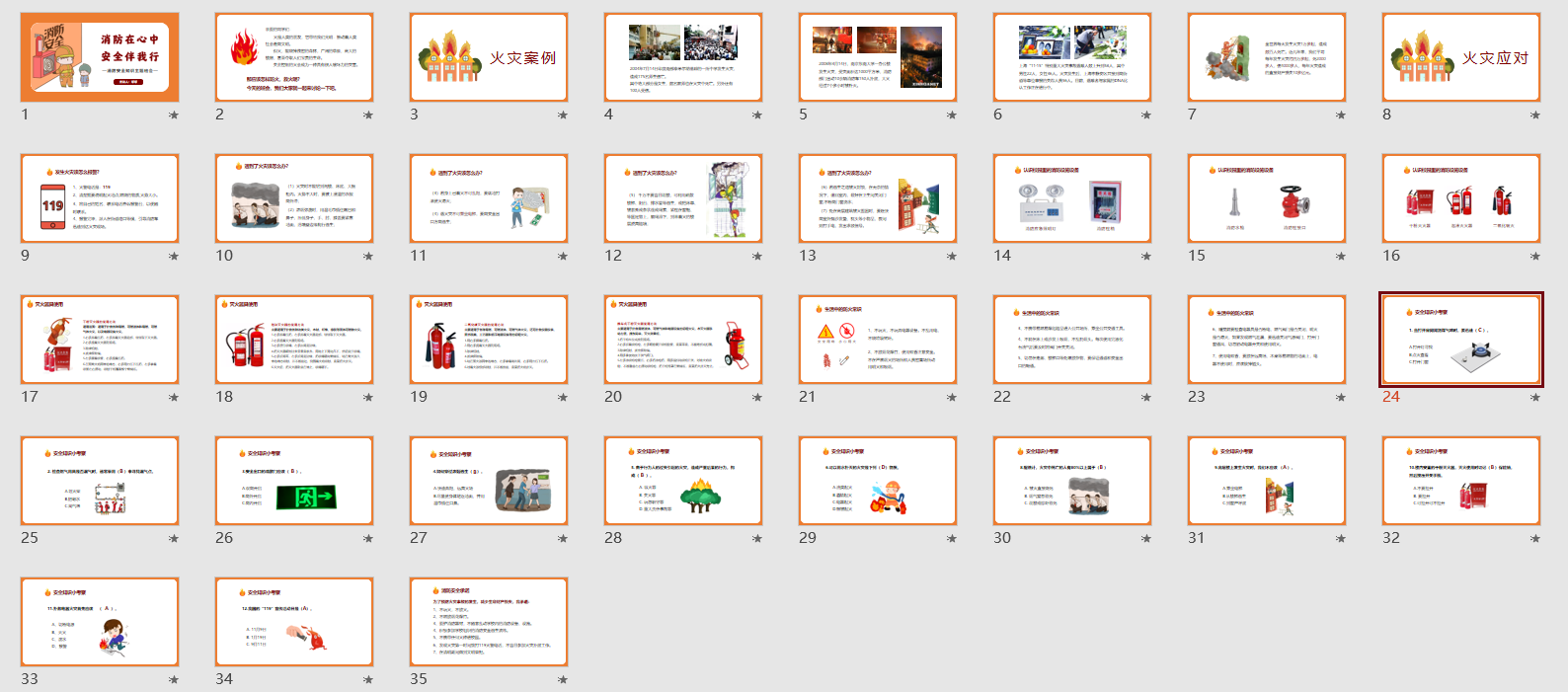 2.今天跟大家分享一张消防安全知识主题班会PPT,全内容高质量课件,完整框架精美套用。