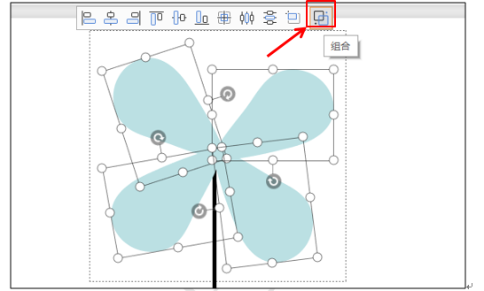 然后按住Ctrl键,同时分别选中四个风叶图,在上面的快捷工具栏中选择组合按钮,如图8