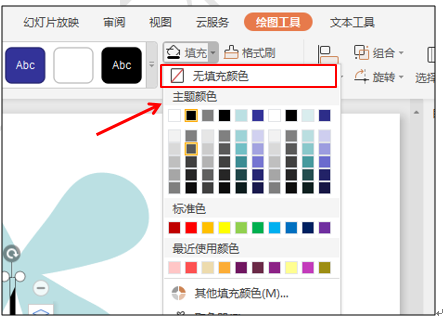 在绘图工具下选择填充按钮,下拉菜单中选择黑色,轮廓设置为无线条颜色,如图7