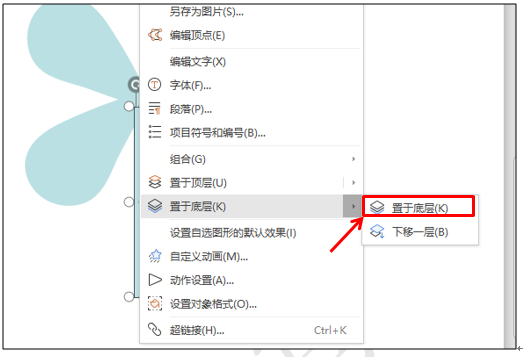 设置好后,选中矩形,点击鼠标右键,在下拉菜单中选择置于底层,如图6
