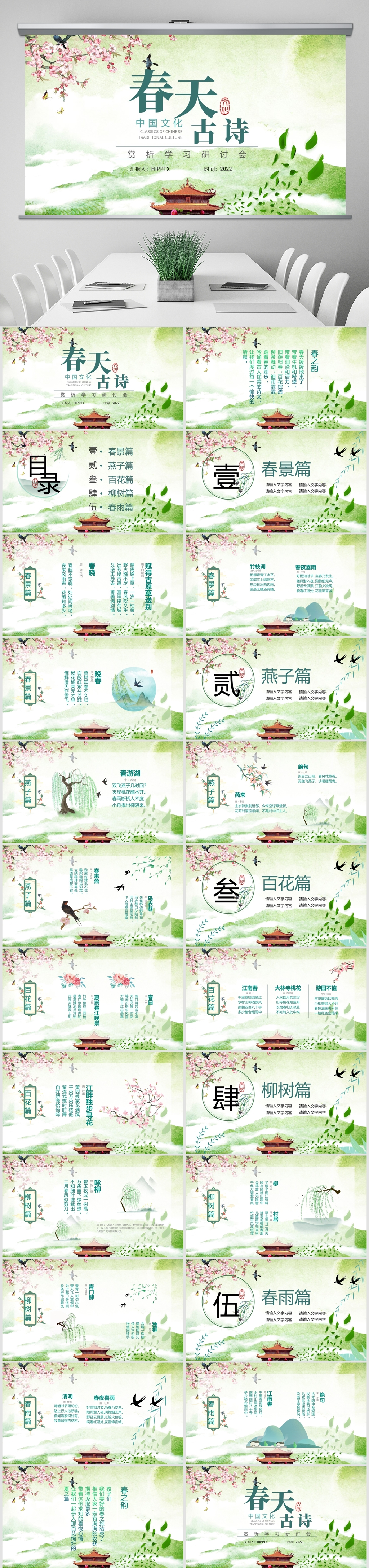 1.这个课件是带内容的ppt,标题是春天古诗ppt课件,内容详实,适合学习古诗词,用于老师讲学等授课。