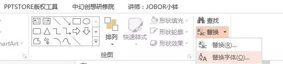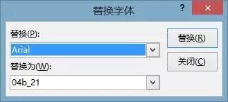 这种方式,是用PPT软件中自带“替换字体”功能,进行操作。优势是不需要安装插件,但需要一种一种字体的进行选择替换。