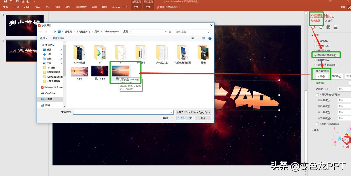 5.六、然后右击选择设置形状格式,选择图片或纹理填充,然后插入图片信息,从文件中插入一张图片