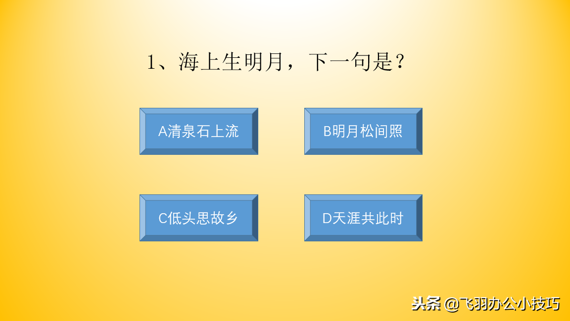 我们老师讲过课,常常会留下一些练习题,让学生巩固一下,现在很多学校都配备了多媒体一体机或者电子白板,我们可以制作一个交互式的PPT课件,让学生去练习,自动反馈做题情况,充分利用设备,同时得到更好的课堂练习效果。