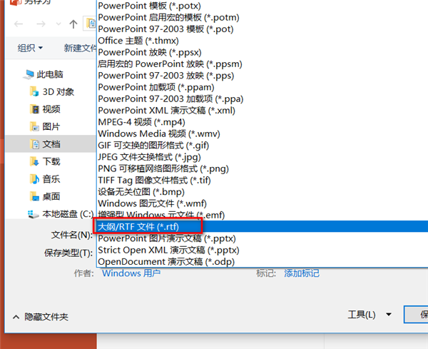 PPT转为Word的方法较为不同,如果想将PPT的内容转换为Word,需要保证PPT内的内容都用占位符进行填写,通过占位符制作的PPT文字内容会以多级标题的形式保存在页面的大纲内容中,之后再将PPT保存为rtf文件的格式即可。