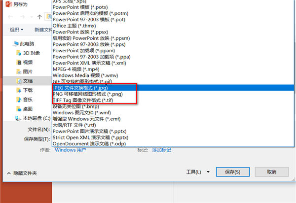 说完了PPT转视频的方法,来说说PPT转图片,在上图的选项里面你应该看到了,我们同样可以将PPT保存为JPEG、PNG、TIFF或GIF四种格式,后者为动图格式。一般来说保存为PNG格式的图片清晰度和质量较高,推荐使用。