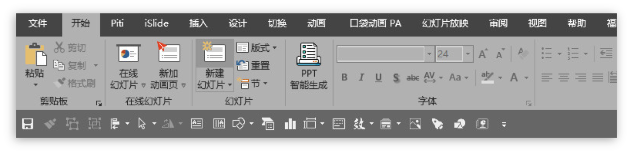 用快速访问栏可以大大加快我们寻找工具的时间,对于经常要做ppt的朋友来说必不可少~