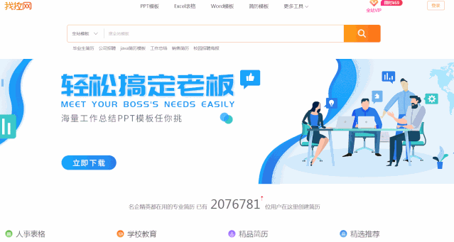 我拉网上面不仅提供Excel、word、ppt等各类office高质量模板,就连简历模板也是统统都有的,还可以在线制作gif、logo等海量精美图片,实现文件格式转换 ,一应俱全,求职、工作一下就变得很专业。