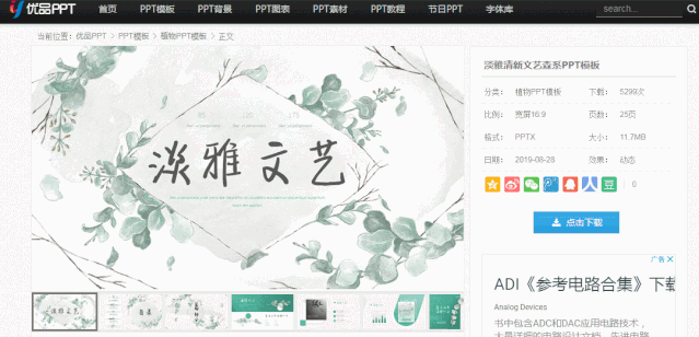 这个网站无需注册登录,你就可以选择你心仪的ppt模板、图片图表素材、文字素材等免费下载。页面上方有清晰的不同分类可供选择,也可以直接搜索。只要是跟ppt相关的素材,几乎都能满足你的需求!